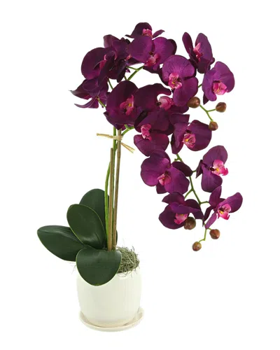 Orchid Arrangement In Ceramic Pot With Rocks In Purple
