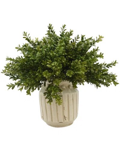 Boxwood Arrangement In A Cream Ceramic Container In White