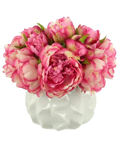Modern Peony Arrangement In A Wavy Ceramic Pot In Pink