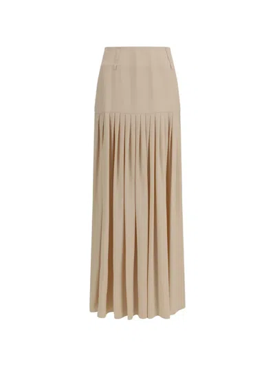 Pleated Long Skirt In Brown