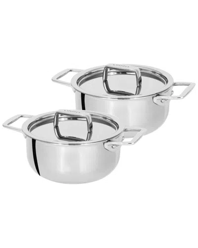 Castel Pro Set Of 2 Mini 0.5 Qt Stewpans With Lids In Silver