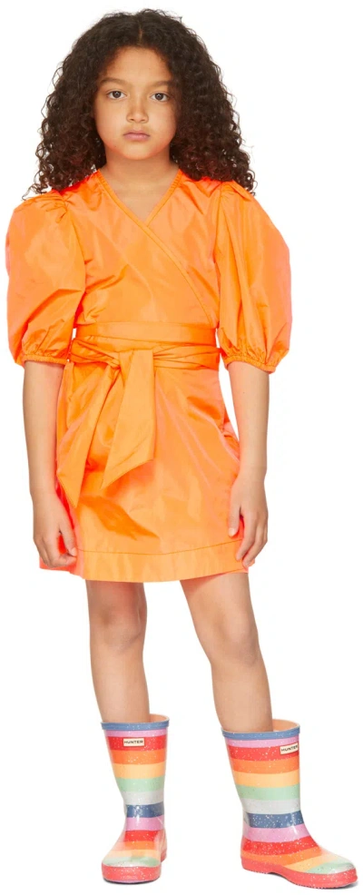 Kids Orange Wrap Waist Dress In Nn Fluo Orange