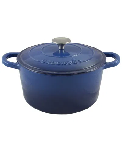 Crockpot Artisan Enameled 5qt Cast Iron Round Braiser Pan With Self Basting Lid In Blue