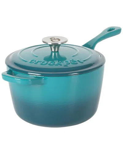 Crockpot Artisan 3.5qt Enameled Cast Iron Deep Saute Pan With Self Basting Lid In Teal