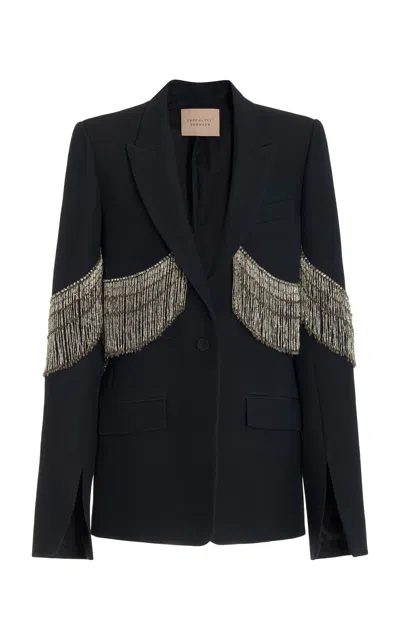 Women's Le Alba Fringed Wool-silk Blazer Jacket In Black
