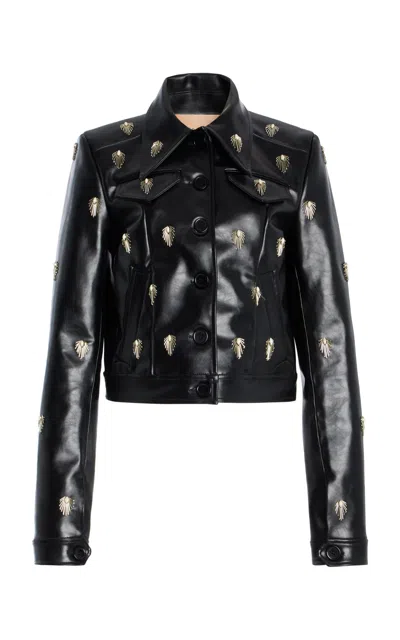 Pendant Medallion Embroidered Leather Jacket In Black