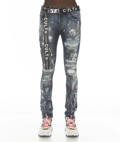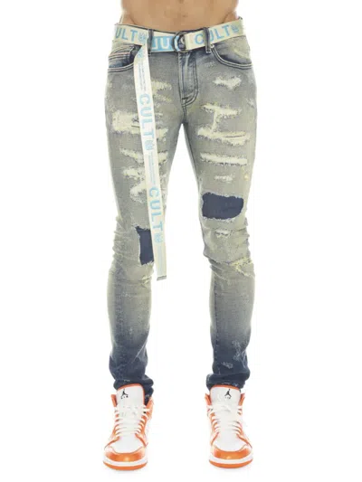 Men's Punk Belted Super Skinny Jeans In Ino Grey