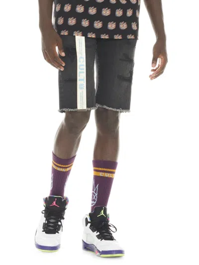 Men's Slim Fit Distressed Belted Jean Shorts In Jet Black