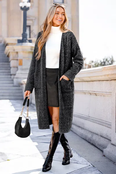 Striped Open Front Long Sleeve Duster Cardigan In Neutral