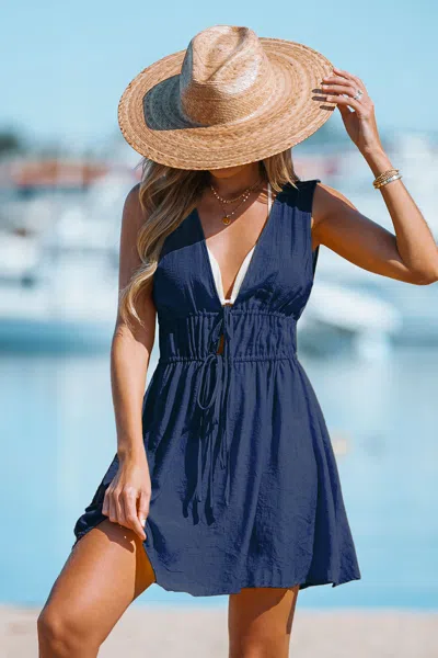 Navy Plunging Double Waist Tie Cover-up Dress In Blue