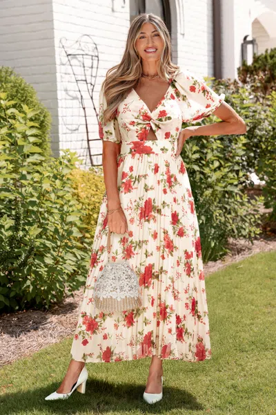 Wing It Floral Midi Dress In Red