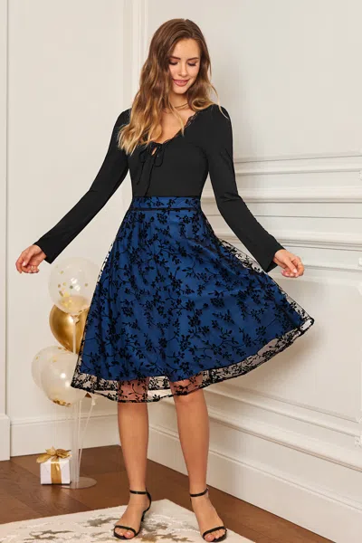 Saphire Blooms Floral Midi Skirt In Blue