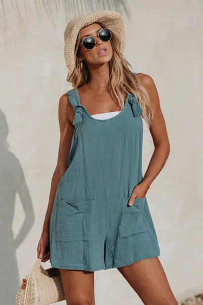 Teal Sleeveless Square Neck Wide Leg Romper In Blue