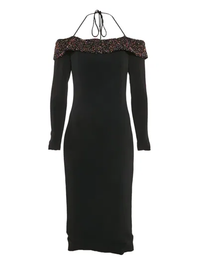 缀饰露肩绉纱中长连衣裙(典藏款)