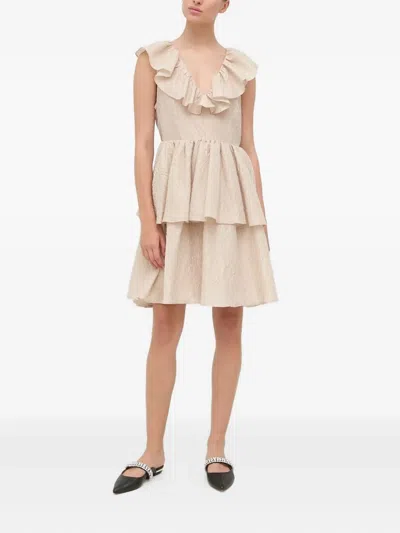 荷叶边细节棉混纺迷你连衣裙