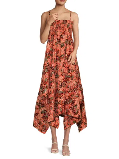 A. L.c. Women's Print Handkerchief Hem Midi Dress In Orange Multi