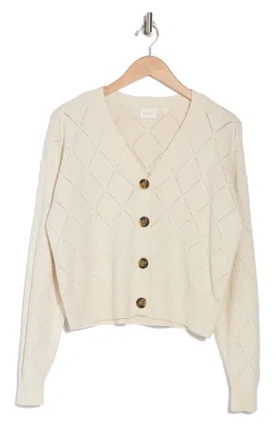 Pointelle Knit Button Cardigan In Cream