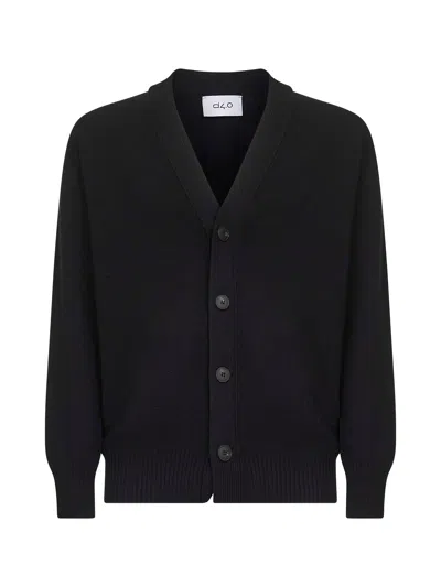 Black Virgin Wool Knit Relaxed Fit Cardigan<br/>