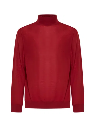 Red Virgin Wool Mock Neck Sweater