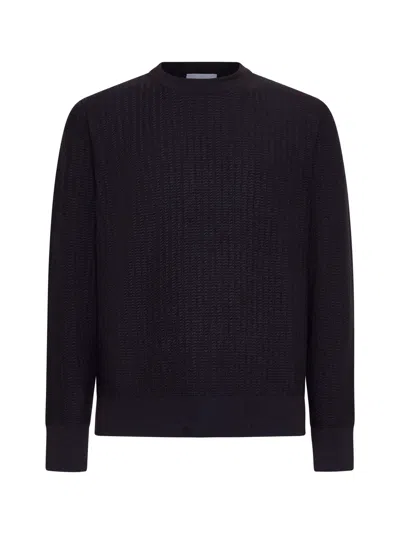 Blue Wool Crewneck Sweater In Black