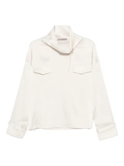D.exterior Satin Tunic Merinos Blouse In Neutral