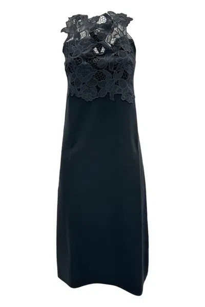 Abito Lungo Nero Traforato Con Sottoveste Beige