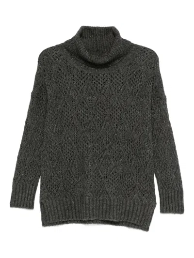 Textured Open-knit Sweater With Subtle Sequins In Brown