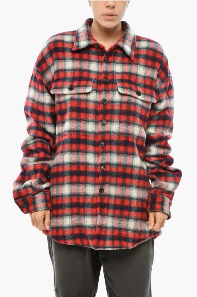 Check Patterned Eco-shearling Overshirt In Red