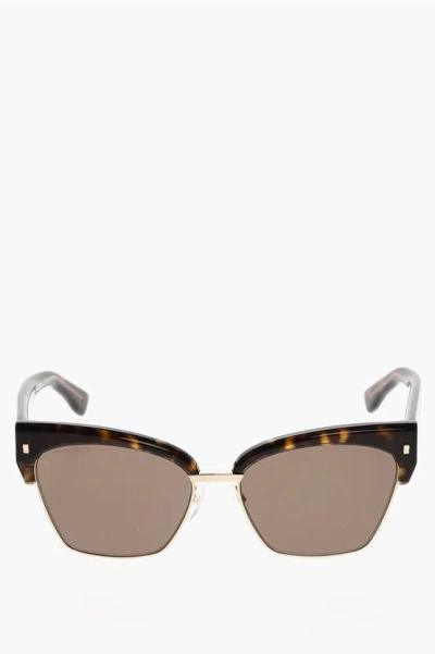 Cat-eye Sunglasses With Golden Metal Details In Brown