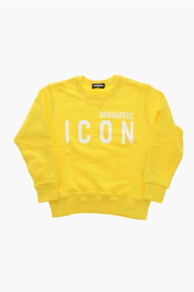 Crew Neck Icon Brushed Cotton Sweatshirt In Yellow
