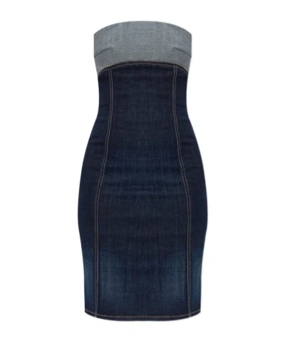 晶饰牛仔紧胸衣式迷你连衣裙