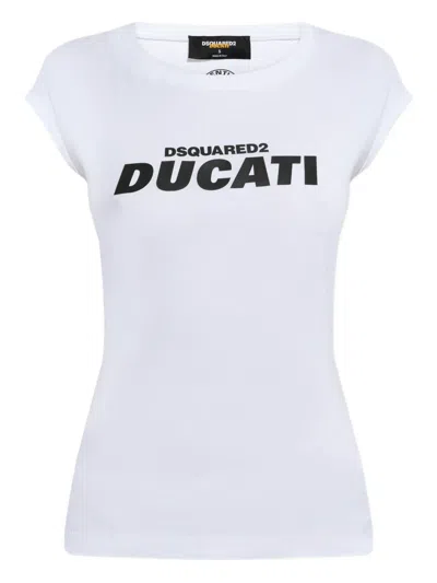 X Ducati Logo Printed Crewneck T-shirt In White