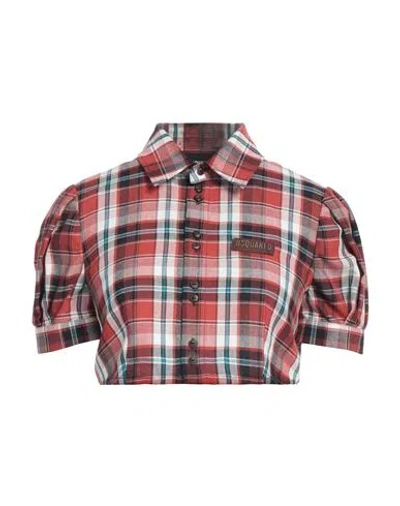 Checked Cropped Blouse With Leather Logo In Red