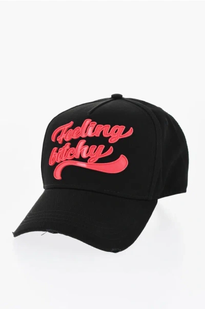 DSQUARED2 ICON DISTRESSED BASEBALL CAP - 黑色