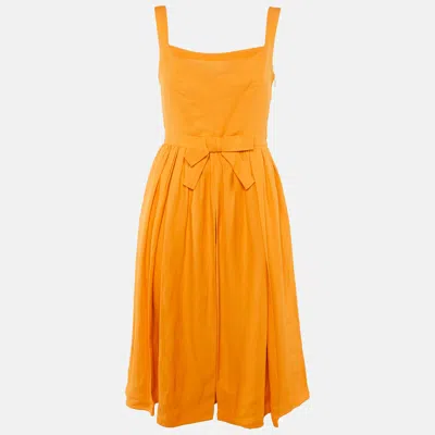Pre-owned Orange Crepe Bow Detail Midi Dress M