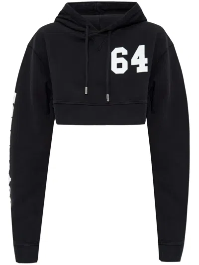Logo Detailed Cropped Drawstring Hoodie In Black