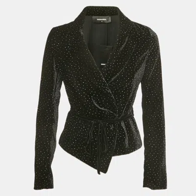 Pre-owned Black Embellished Velvet Wrap Blazer S