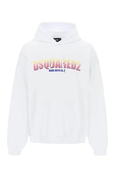 Dsquared Cool Fit Sweatshirt With Drawstring Hood In White