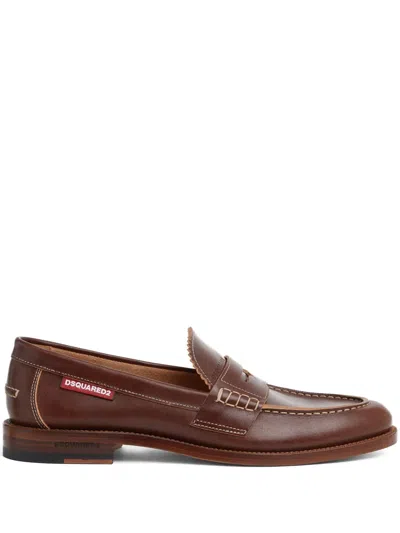 Leather Penny Loafers In Brown