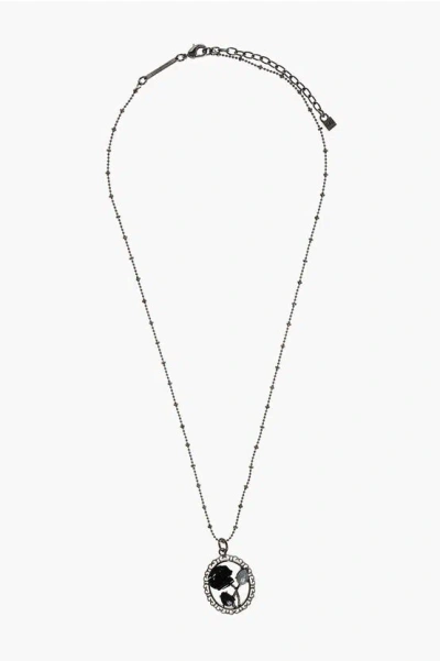 Metal Necklace With Rose Pendant In Metallic