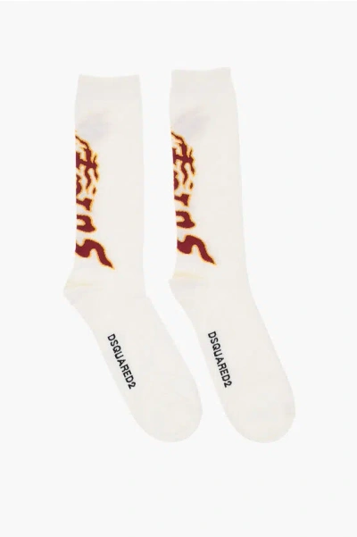Cotton And Nylon Stretch Socks Withcontrasting Logo In White