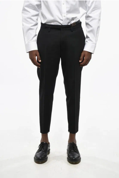 Icon Straight Leg Virgin Wool Pants With Leather Application In Black