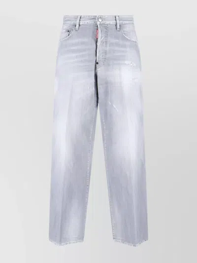 Straight Fit Trousers Distressed Finish In Silver