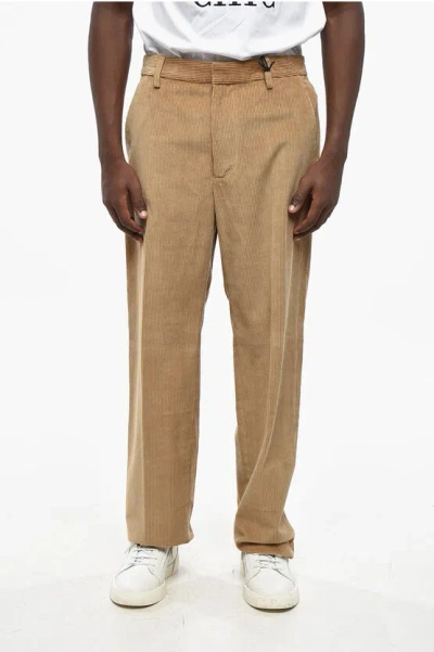 Straight Trousers With Distressed Finish And Pockets In Brown