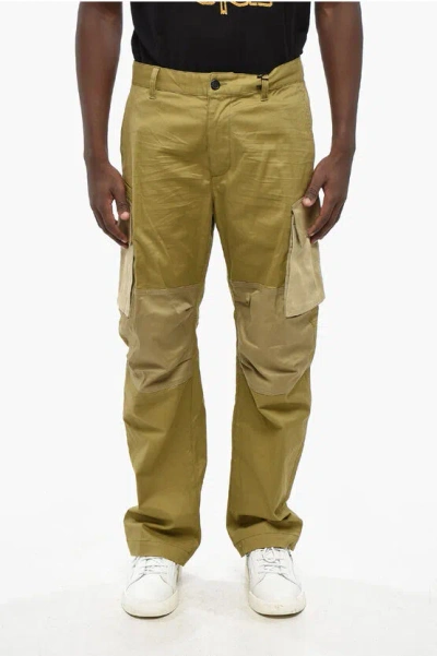 Straight Leg Cargo Pants With Corduroy Pockets In Green