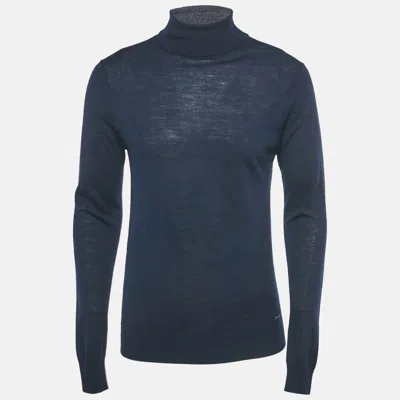 Pre-owned Navy Blue Wool Knit Turtle Neck Sweater M