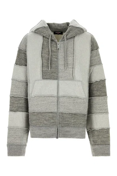 Dsquared Men Melange Grey Cotton Oversize Sweatshirt In Gray