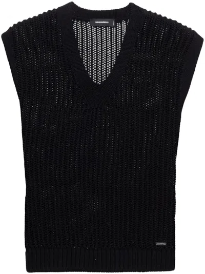 Solid Color Mohair Blend Fuzzy Vest In Black