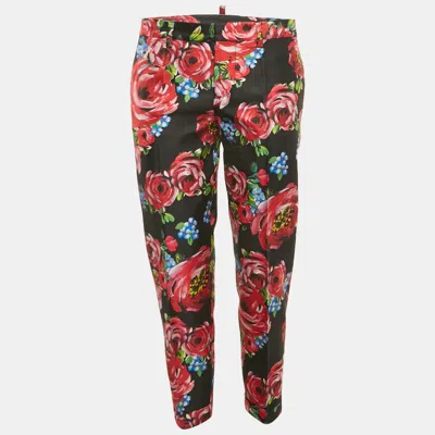 Pre-owned Black Floral Print Silk Gabardine Pants S
