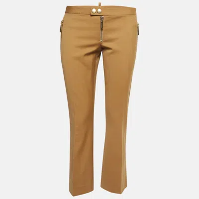 Pre-owned Brown Gabardine Zipper Detail Trousers M